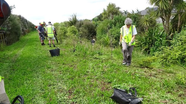 Well, not just yet. On Thursday we went back to the swale beside the expressway and continued to clear the plants for the spray team. We finished the northern end of the planting, but there's still about 50 metres left at the southern end.