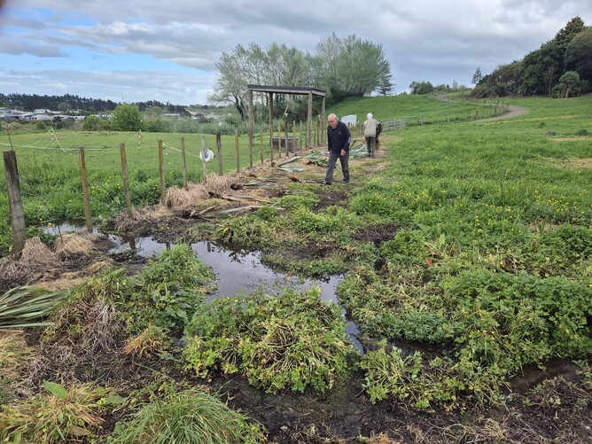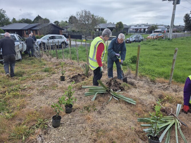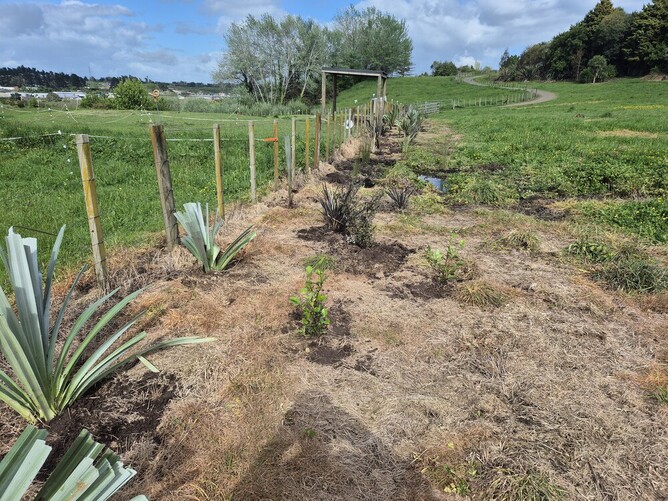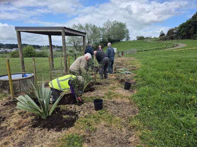 Thursday, 16th October, and we've finally been able to get around to planting on the paddock above Riding for the Disabled. They don't use it any more, as the land is positively soggy, and the Council asked us to plant it rather than have their mower struggle to mow it and get stuck in the process. It's late for planting, but we're relying on the copious water supply to keep the plants in good health over the summer.