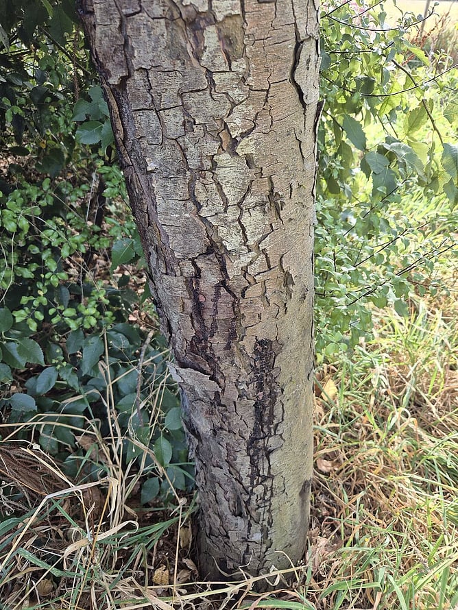 We have a major problem here in that several trees have been infected with something. We've had experts look at it, including at least one from Scion, without getting a diagnosis let alone a cure. These photos show the flaking and oozing bark that goes with the problem. The trees are also losing whole branches of foliage.All we can do is cross our fingers and hope, unless somebody turns to who knows the answer.