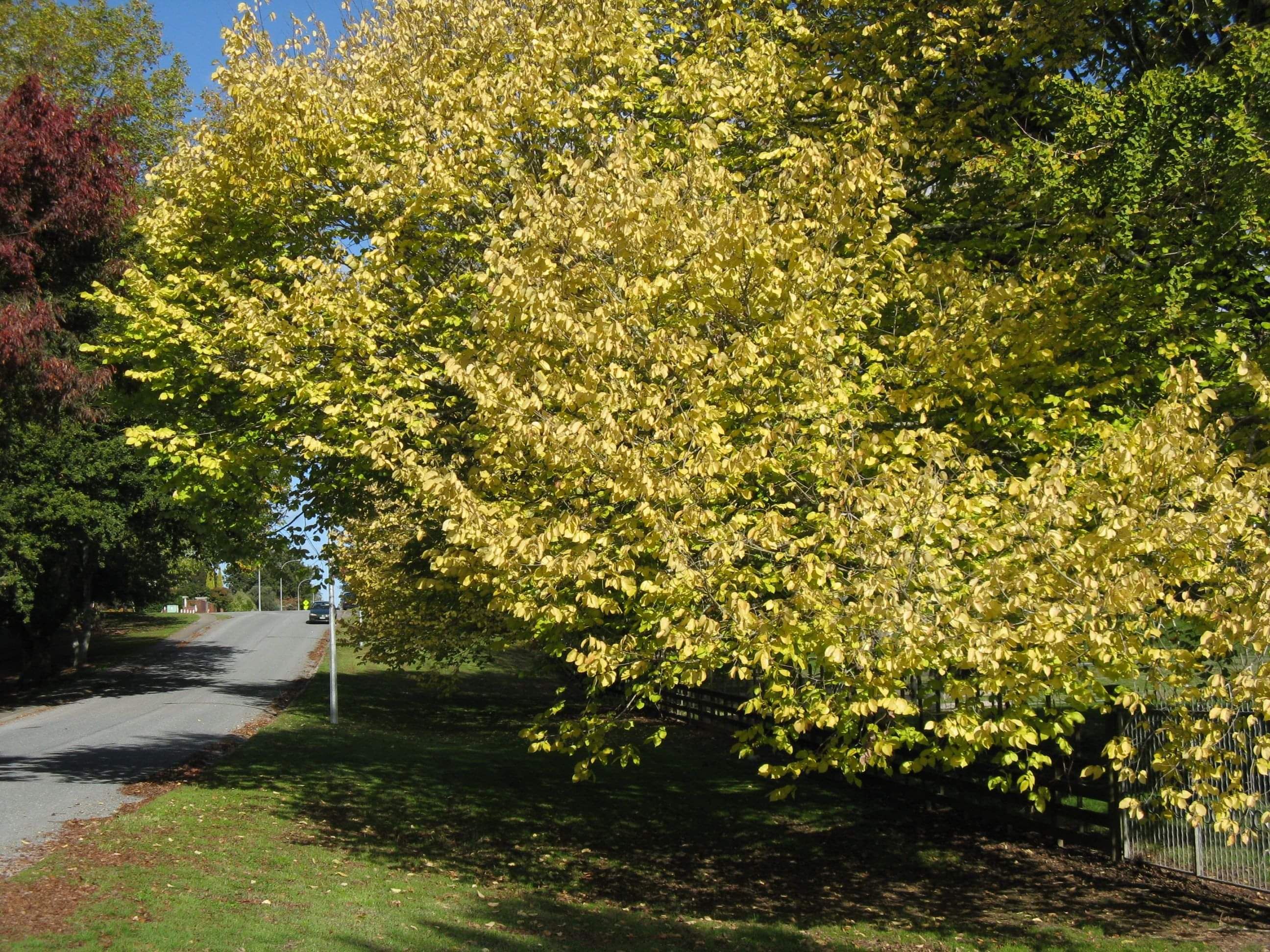 We may doubt that our prevalent, rather garish, yellow variety will evoke such longing in the hearts of New Zealanders, but next October take a moment to sit under the specimen growing close to the clock tower in Victoria Street. It may not be tall, but the spread of its branches is magnificent, and viewed from beneath in the late spring, before its leaves have yellowed, it forms a beautiful light green shade canopy, most calming to the soul.