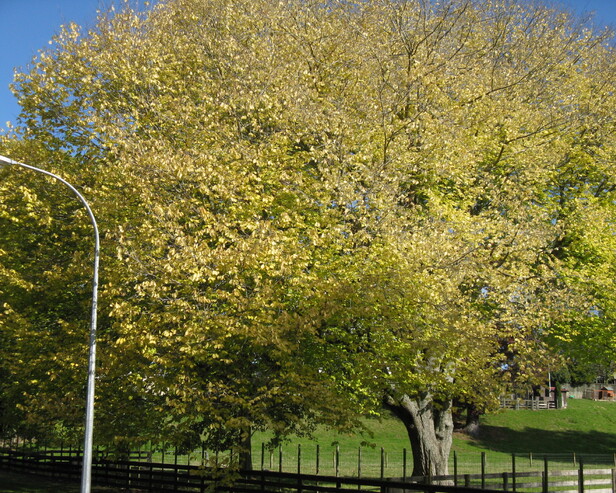 Planted extensively in gardens, parks and farms throughout New Zealand, this golden form of the English elm never reaches the stature of its green parent, which can grow as tall as 45 metres. Decimated now in England by Dutch elm disease, they were once the glory of the English countryside, evoking nostalgia in the heart of many an Englishman or woman. Constable was constantly trying to capture the beauty of the elm in his paintings, although it is said his oaks were better than his elms! And in 1845 Robert Browning, in ‘Home Thoughts from Abroad’, wrote: