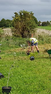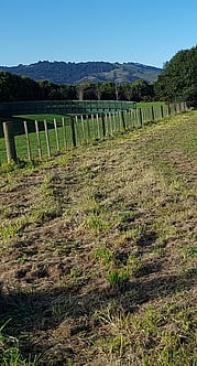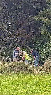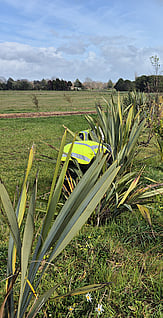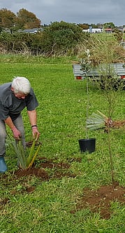 In 2023, we finished the job. Several trees did not survive the mid-spring frost of October 2022, and we replaced them. Then we went to the western side of the Totara Grove and extended the planting, using bigger trees this time to avoid having to spray first. We had to clear the long grass and weeds from a corner that the silage-maker's mower hadn't been able to reach, and we sprayed that after we'd used our brushcutters. The area turned out to be surprisingly large, and it took us two sessions to finish the planting.