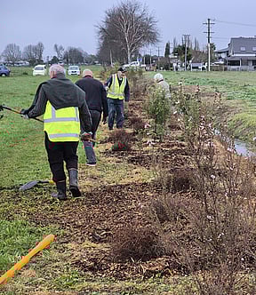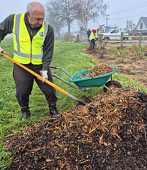 Removing plastic wrap taken off hay bales when the land was leased for grazing.