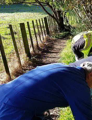 In the northeast corner is the Kingsley Street Reserve above the river and the bridge leading into Shakespeare St. The first leg of the Leamington Walkway goes along Addison St. At its end, a bridge over a stream leads into grazed fields. Bear right and follow the path near the fence. Part way along, a swinging pedestrian gate takes you inside the fence.