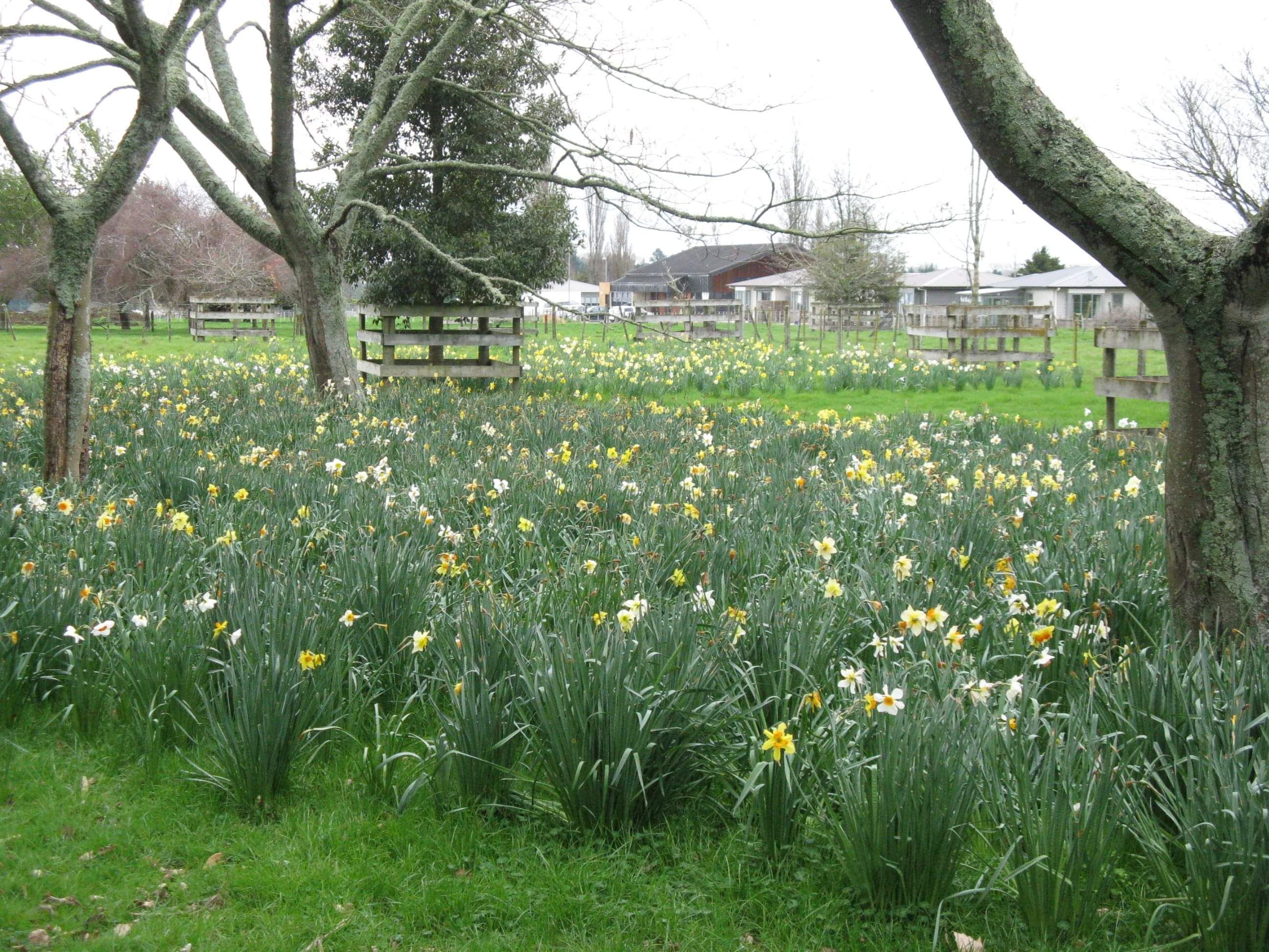 Arbor Day 1998 marked the planting of Daffodils around the town. With support from Council and Tree Trust Volunteers a number of areas were planted out around town at this time. Hamilton Road on the main approach to Cambridge and the eastern approaches to the town, by the Karapiro Stream Bridge. Payne Park was included in the Hamilton Road plantings, and more bulbs have been added from time to time