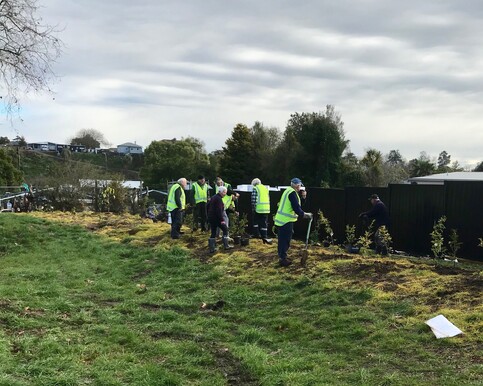 The Waipa District Council asked us to plant the area after the tracks had been finished. We were happy to do so. When our planners went there to survey the scene, they met some riders and got into conversation with them. The result was a plan which puts low-growing plants, mainly grasses, in the heart of the tracks so that riders have good visibility and can avoid accidents. Taller plants, largely camelias, have been planted around the outside.