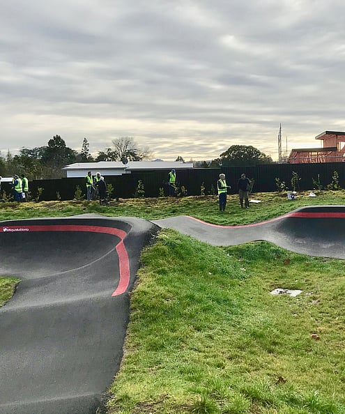 The Velosolutions Pump Track, or Cambridge pump track, offers a 196m long track and a 222m jump track joined by a bowl in the middle of the two tracks. It is located next door to the public swimming pools and the skateboard park. Cambridge pump track is a great place for the entire family to enjoy and play on, and with a footprint of over 2 300m2, the track is the largest pump track in Oceania.