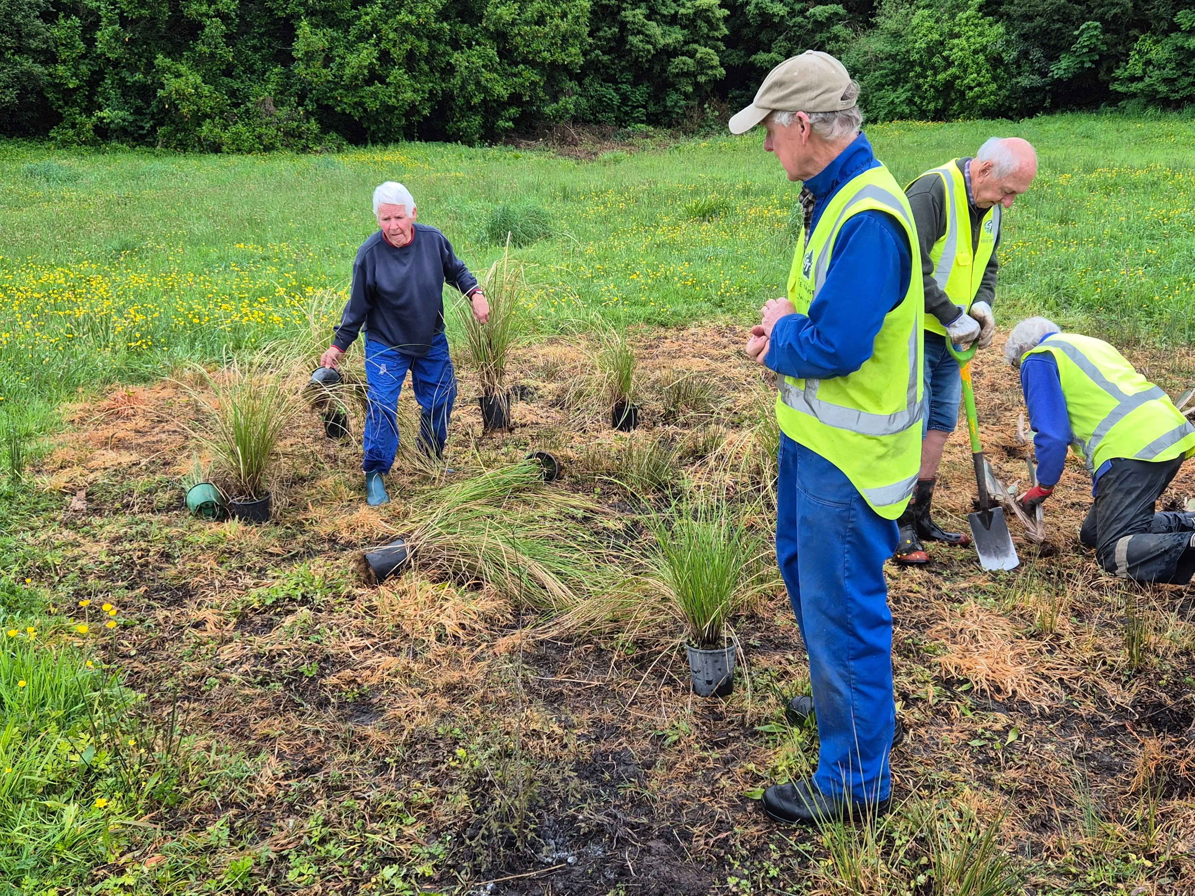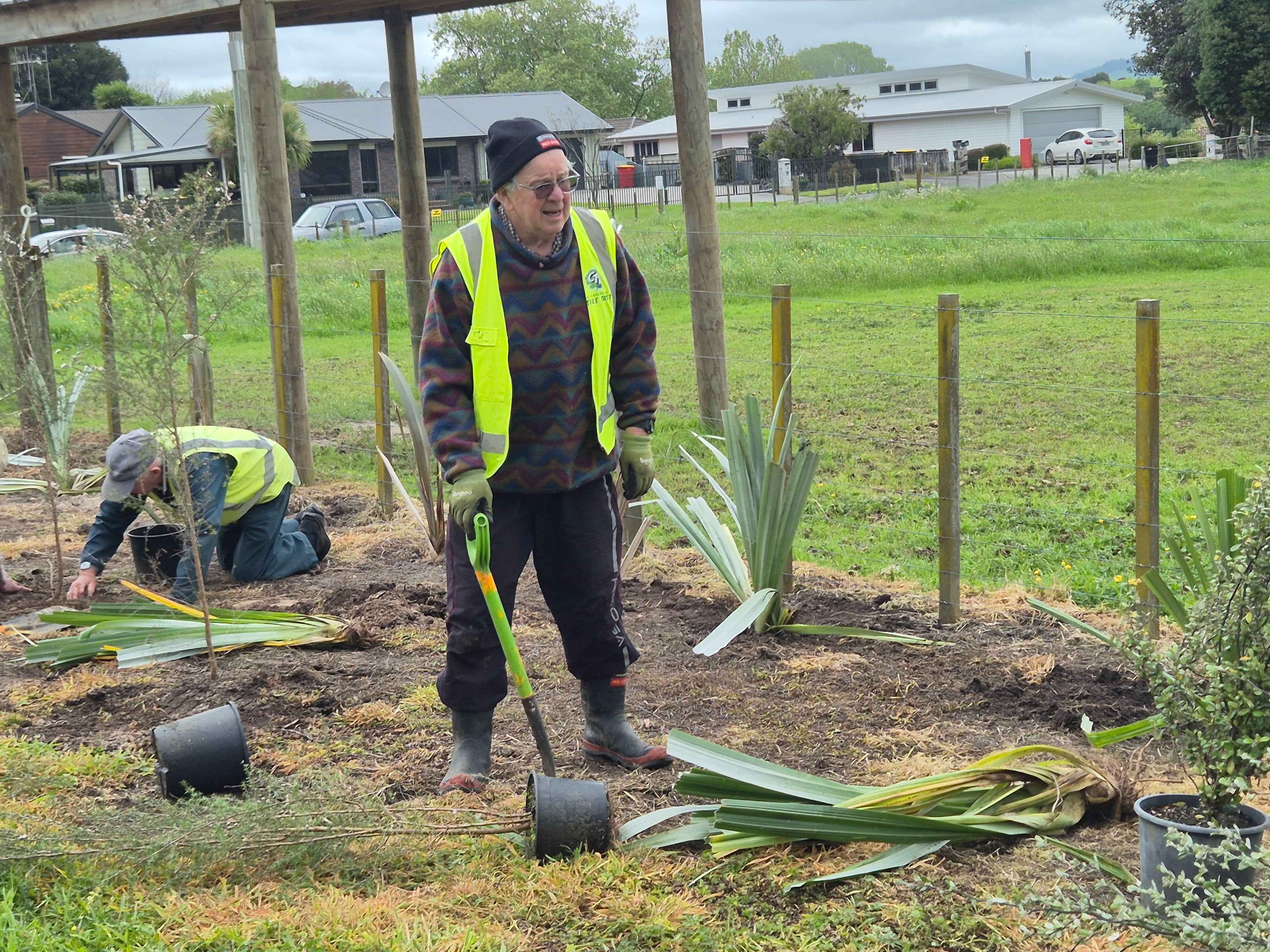We're back at the paddock that Riding for the Disabled used to use, finishing off the initial planting there. It was done in very short order, since we had a good turnout, then we went back to the nursery for a fairly early morning tea.