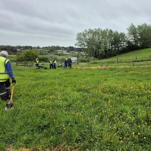 Thursday, 16th October, and we've finally been able to get around to planting on the paddock above Riding for the Disabled. They don't use it any more, as the land is positively soggy, and the Council asked us to plant it rather than have their mower struggle to mow it and get stuck in the process. It's late for planting, but we're relying on the copious water supply to keep the plants in good health over the summer.