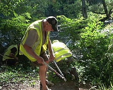 More gum trees will be felled from time to time by the Council, largely to stop them falling into the river. The soil here is very sandy and loose, and doesn't hold big trees very well. We will do further planting as the gums are felled. Bamboo has also been a major problem.